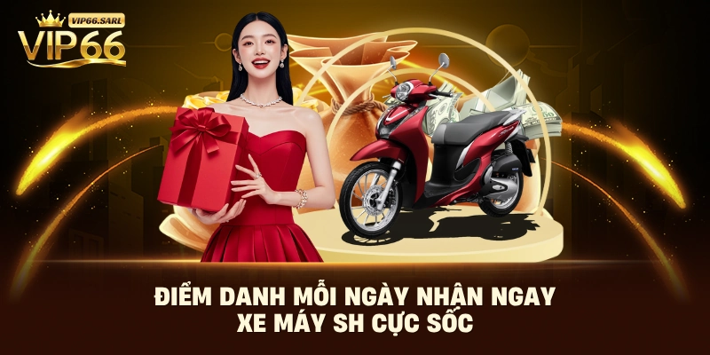 Chương trình điểm danh mỗi ngày nhận ngay xe máy SH không chỉ mang lại phần thưởng giá trị mà còn tạo động lực để người dùng tương tác hàng ngày, nâng cao trải nghiệm và gắn bó với nền tảng VIP66.